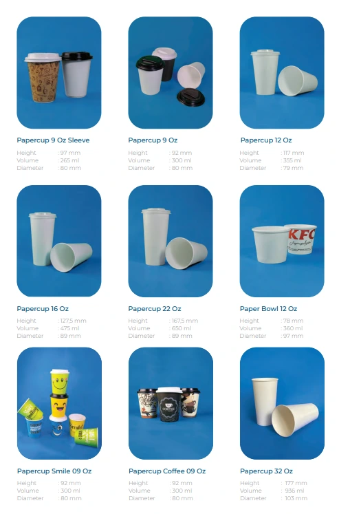 | 5 | Ice Cream Cup | 3 oz – 8 oz | Cup kertas kecil untuk dessert dan es krim. |