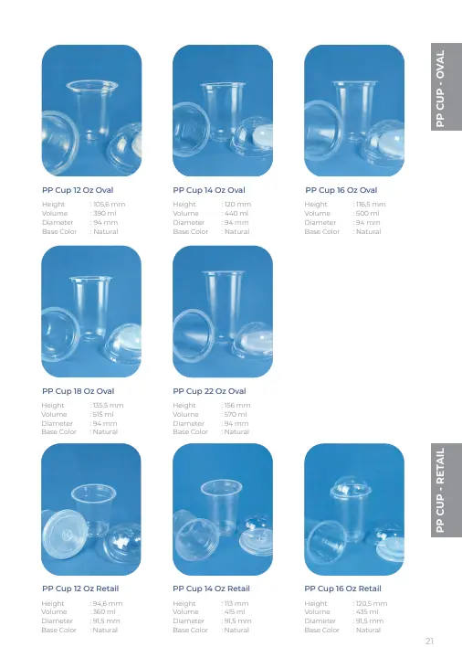 | PP Cup 14 Oz Oval | 120 mm | 440 ml | 94 mm | Natural |