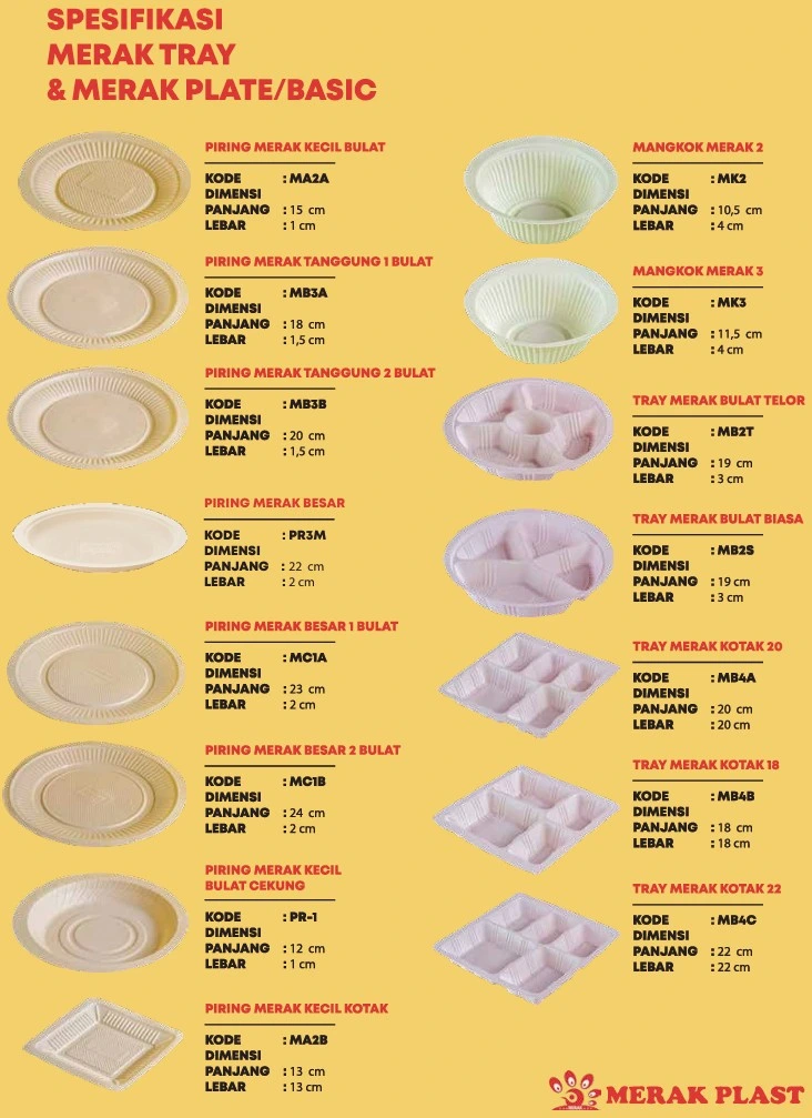 | 11 | Tray Merak Bulat Telor | MB2T | 19 cm x 3 cm | Tray bulat sekat, cocok untuk telur atau snack |